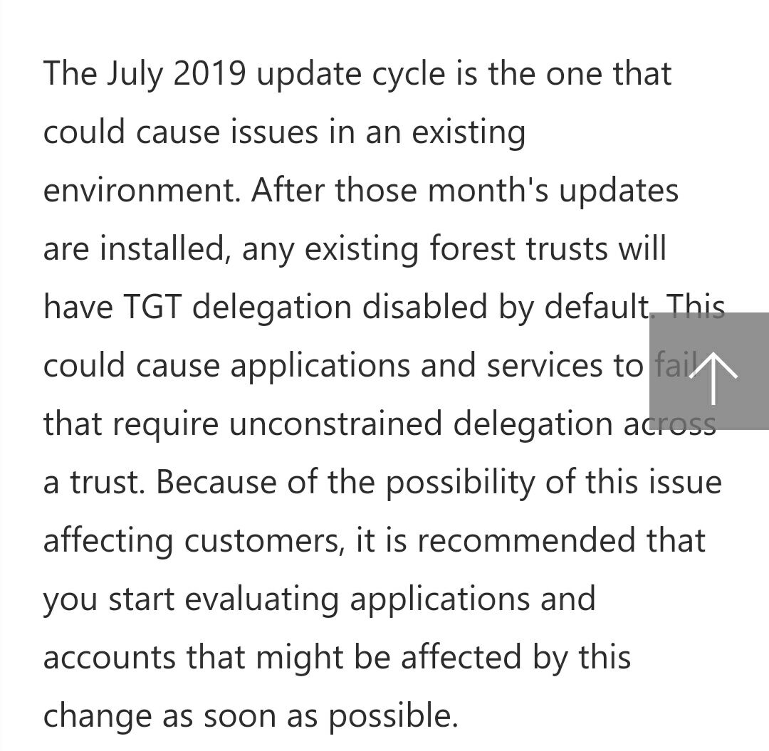 https://techcommunity.microsoft.com/t5/Premier-Field-Engineering/Changes-to-Ticket-Granting-Ticket-TGT-Delegation-Across-Trusts/ba-p/440283