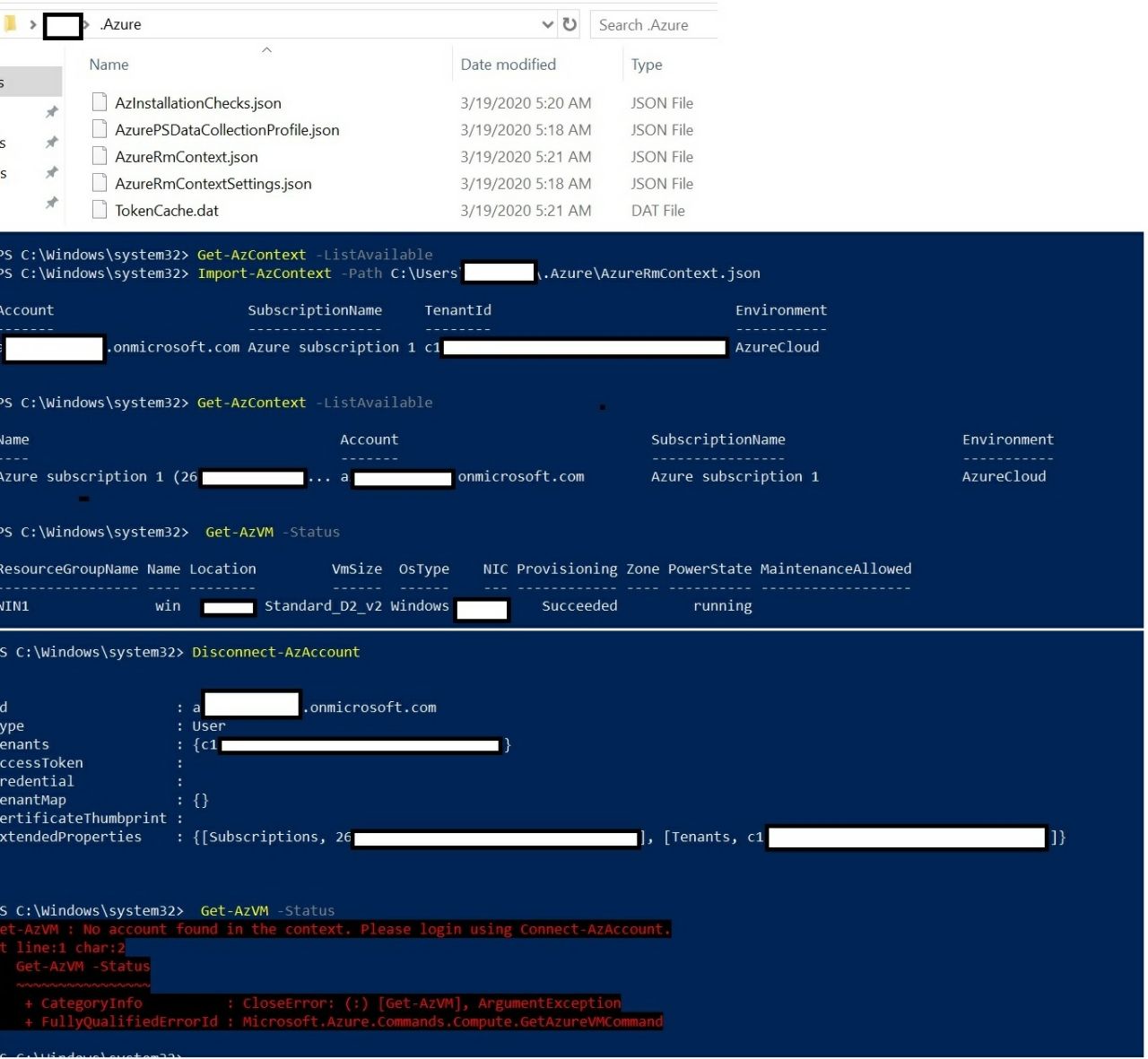 Особенность использования командлетов PowerShell Az состоит в том, что они сохраняют токены доступа в папке .Azure в профиле пользователя. Это не секрет. И ходят слухи, что таких токенов недостаточно - можно использовать только файл со специально сохраненными пользователем токенами доступа. Наши эксперименты показали, что достаточно использовать только файлы из указанной выше папки для получения доступа к аккаунту