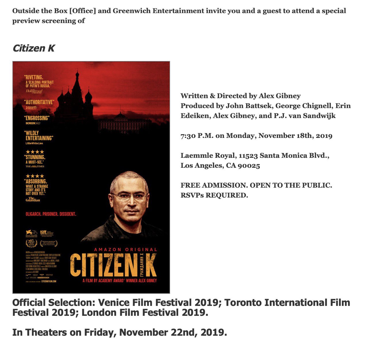 Через школу сходил на пред-показ Гражданин Х (только не говорите, что вы читаете это как Гражданин Икс).