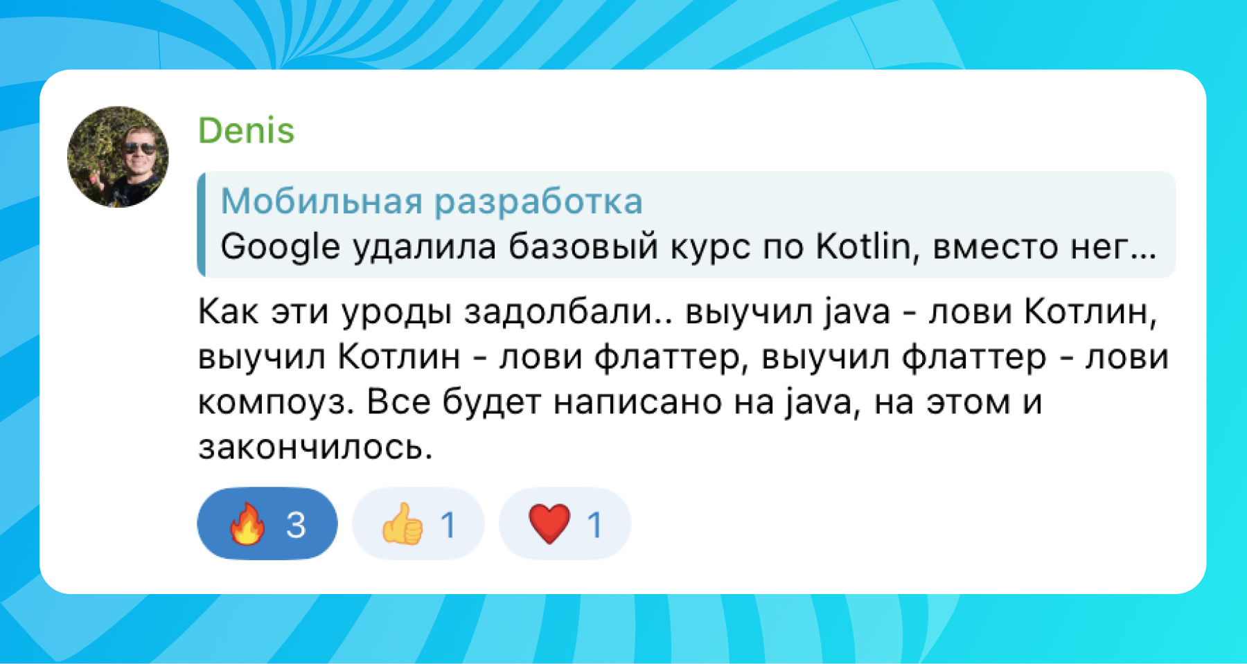 Естественно, не все тепло восприняли такие действия. На Reddit, например, идет активное обсуждение. Там есть как обоснованные за, так и против. Интересно почитать: https://reddit.com/r/androiddev/comments/194r5xm/google_just_removed_their_android_basics_with/