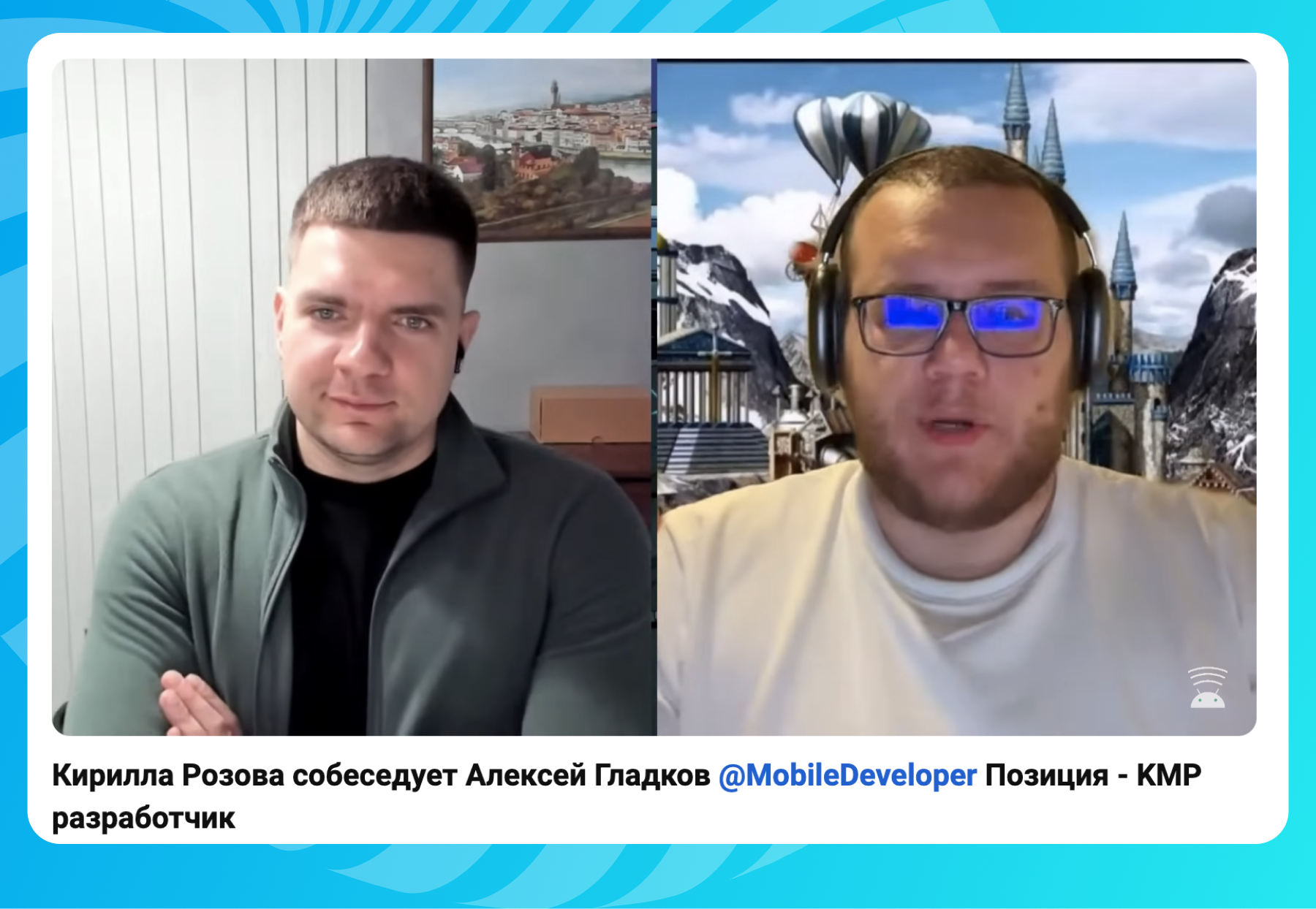 Если пропустили, Алексей Гладков и Кирилл Розов, авторы известных каналов по мобильной разработке, записали стрим, где Алексей проверил знания у Кирилла в формате реального собеседования.