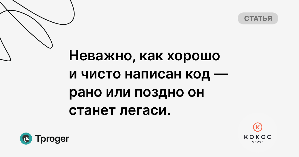 Легаси присутствует в той или иной степени во всех компаниях, где есть разработка. Он всё равно будет появляться и с ним предстоит жить и бороться. А чтобы борьба была не такой тяжёлой, рекомендуем обратить внимание на эту статью.