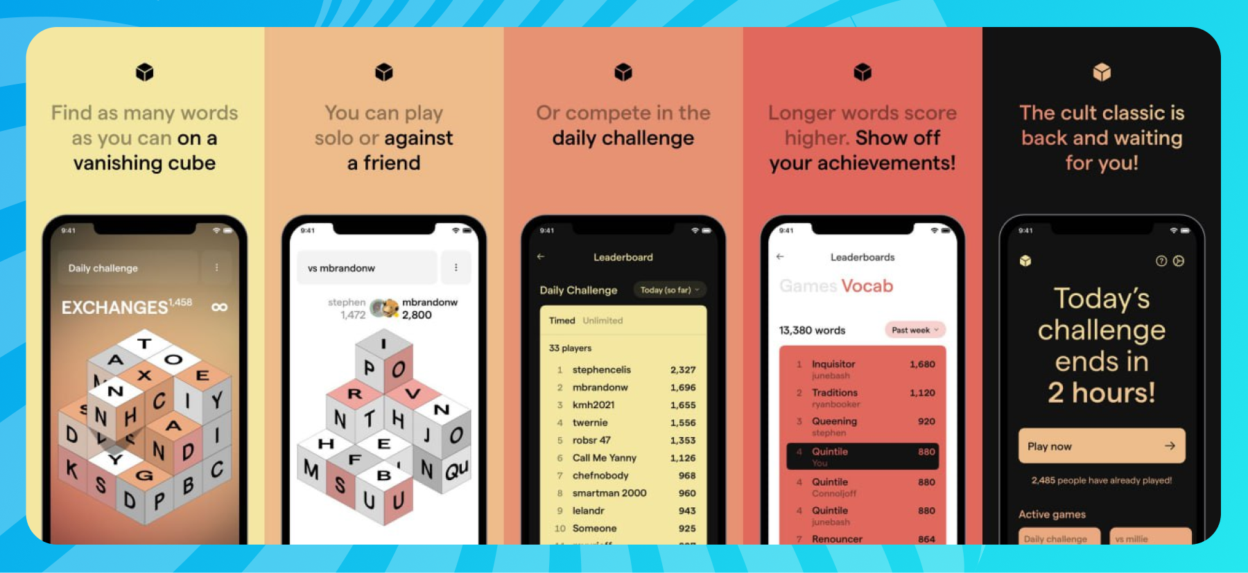 isowords — игра для iOS по поиску слов на кубиках. Надо соединять буквы, чтобы составить слова, чем длиннее, тем лучше, а когда буква будет использована в третий раз, кубик исчезнет, открыв новые буквы внутри.
