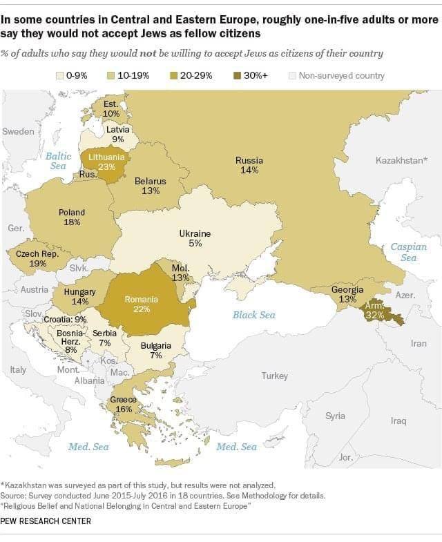 В Украине наименьший среди всех стран процент тех, кто не хотел бы видеть евреев гражданами своей страны.