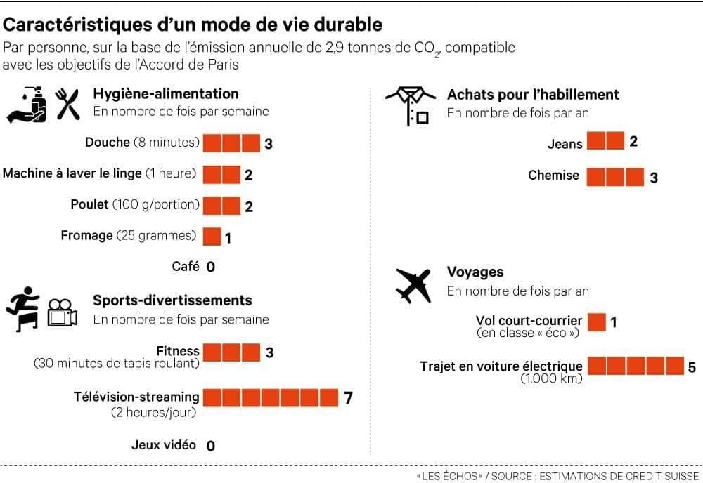 Швейцарский финансовый конгломерат Credit Suisse подсчитал, что сможет позволить себе европеец, чтобы не превышать норму выбросов СО2, которая, согласно Парижскому соглашению, составляет 2,9 тонны в год на человека.