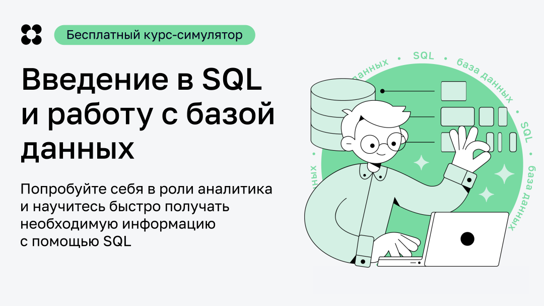 На бесплатном курсе-симуляторе в Нетологии «Введение в SQL и работу с базой данных» вы изучите основы SQL, научитесь подключаться к реляционным базам данных, делать SQL-запросы и создавать простые отчёты и аналитику. Все задания основаны на реальных кейсах из практики аналитиков. Курс подойдет всем, кто работает с данными или хочет начать. Попробуйте → https://netolo.gy/iEo