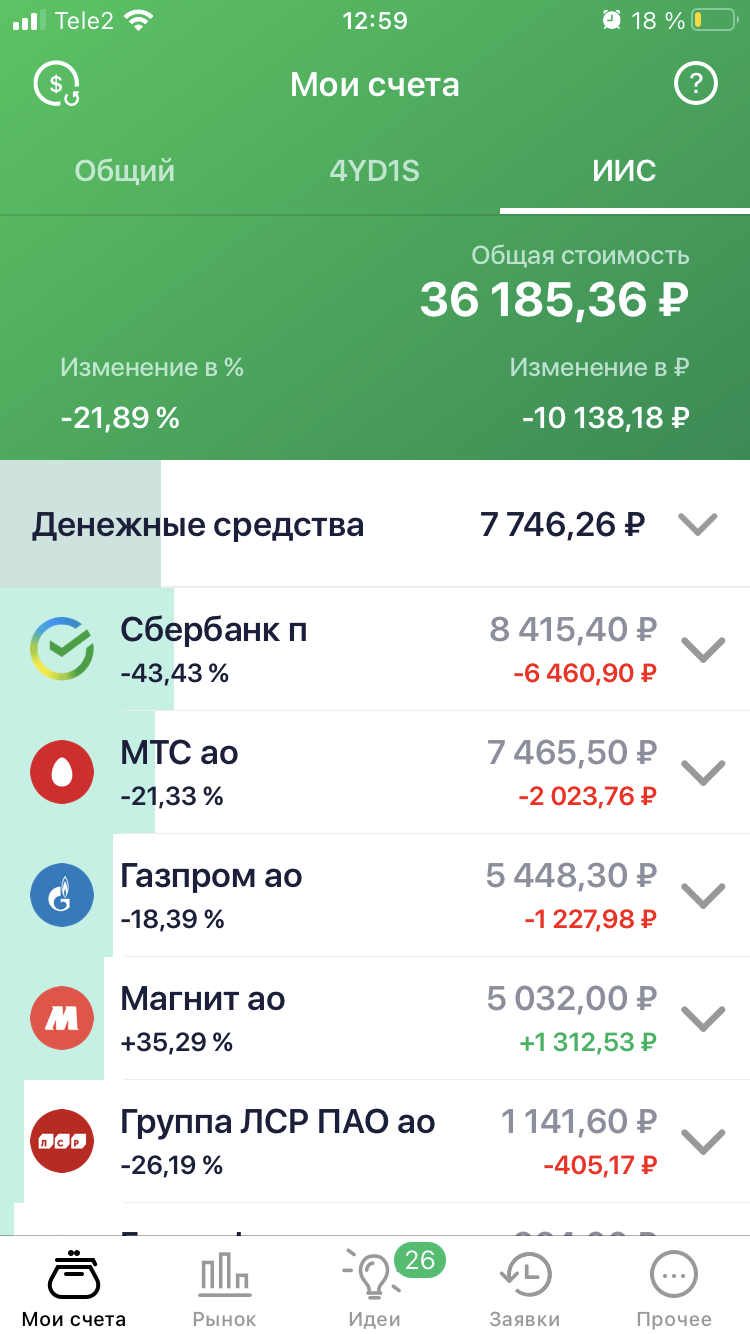 Сейчас мой изначальный портфель снизился на 22%, акции иностранных компаний, которые я докупала, болтаются где-то в недрах «КИТ Финанса», куда их перевёл Сбербанк после попадания под санкции. И мое инвестиционное настроение не очень.