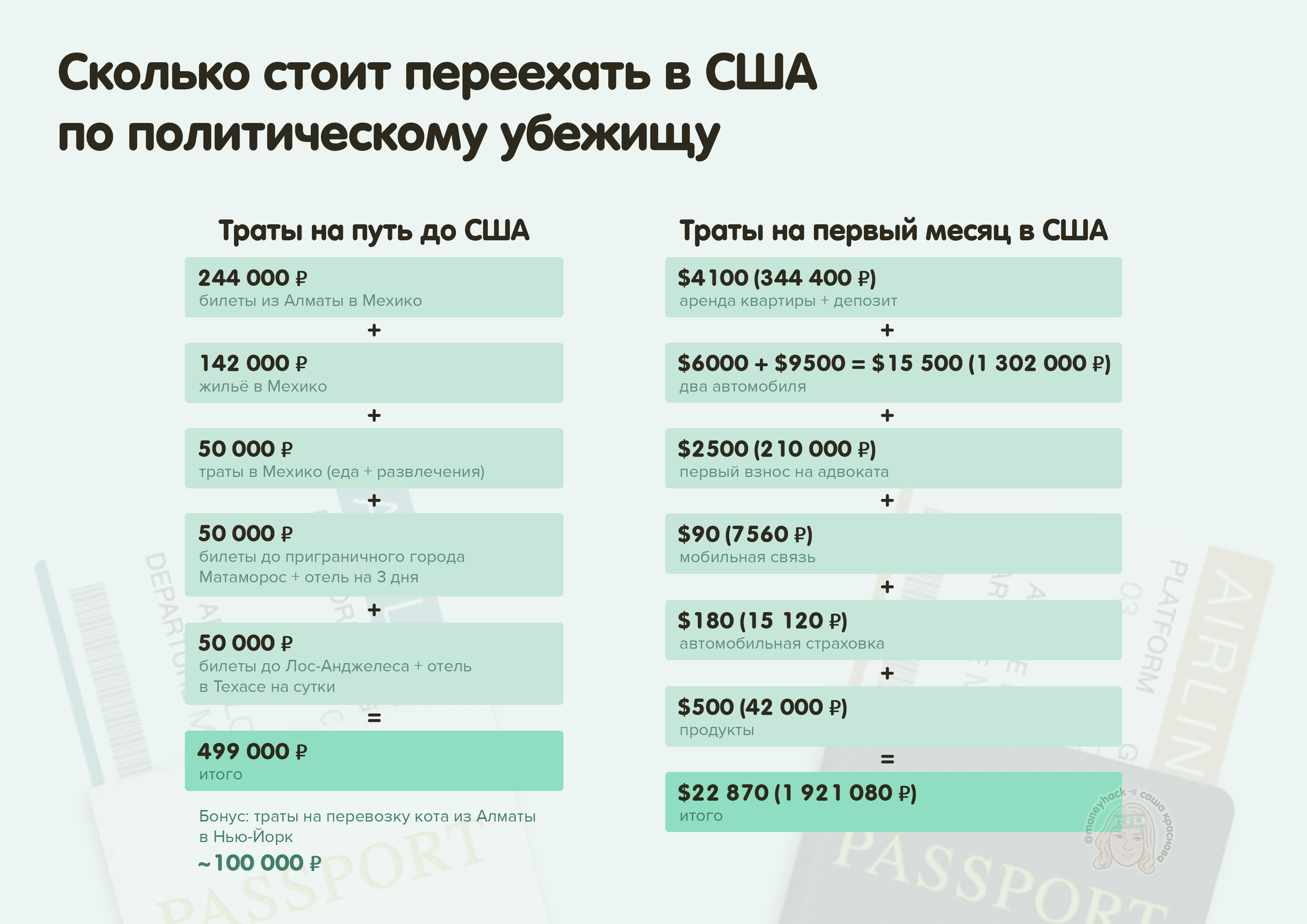 Моя подруга весной этого года перебиралась в США по политическому убежищу. Я попросила её поделиться финансовой стороной вопроса.