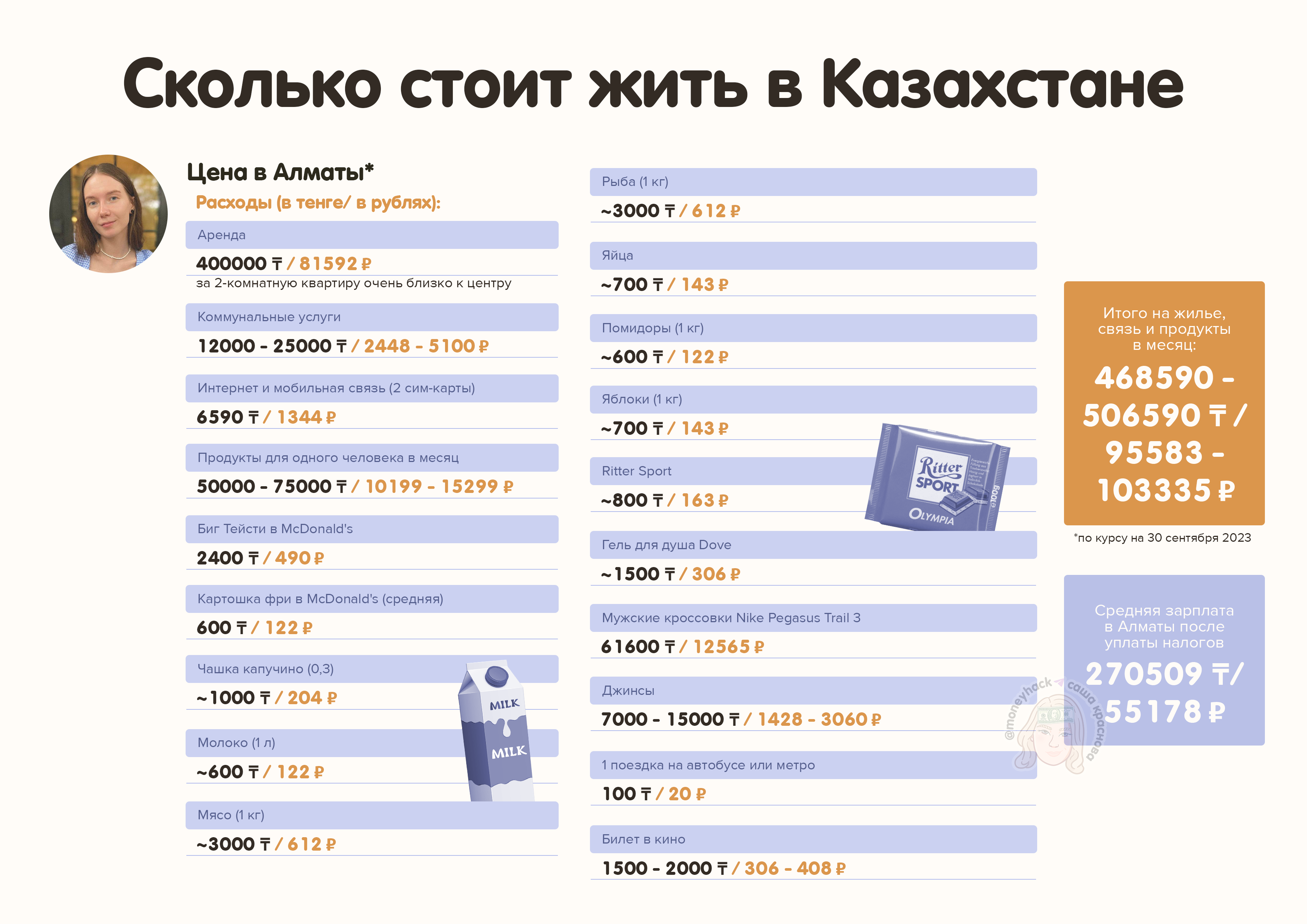 55 000 ₽. Моя читательница Владислава переехала в Алматы в апреле 2022 года. Она поделилась, своими наблюдениями.