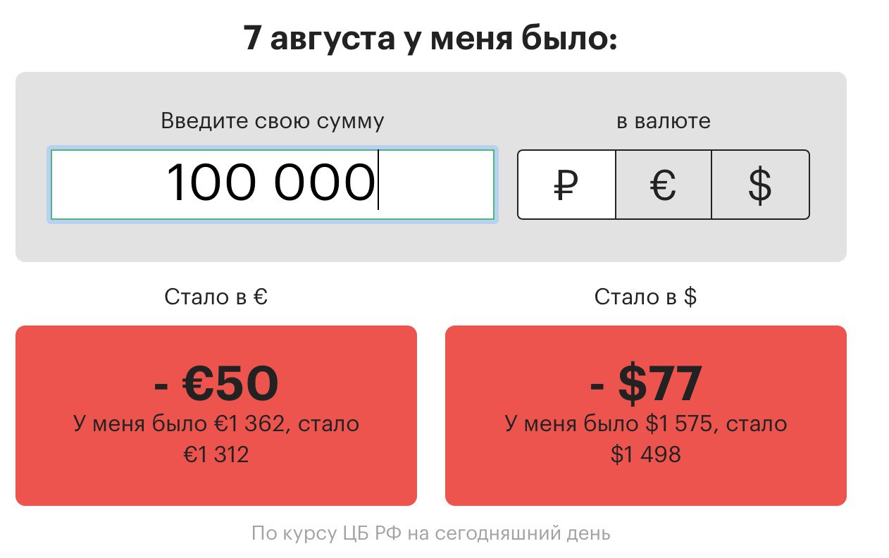 Сколько вы потеряли или заработали на колебаниях рубля - Калькулятор РБК