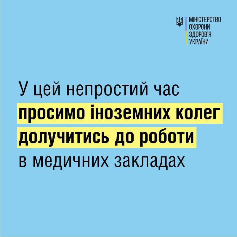 ▪️Наших іноземних колег, які прагнуть захищати Україну разом з українськими медиками, запрошуємо звертатися до закордонних дипломатичних установ у України у відповідних країнах.