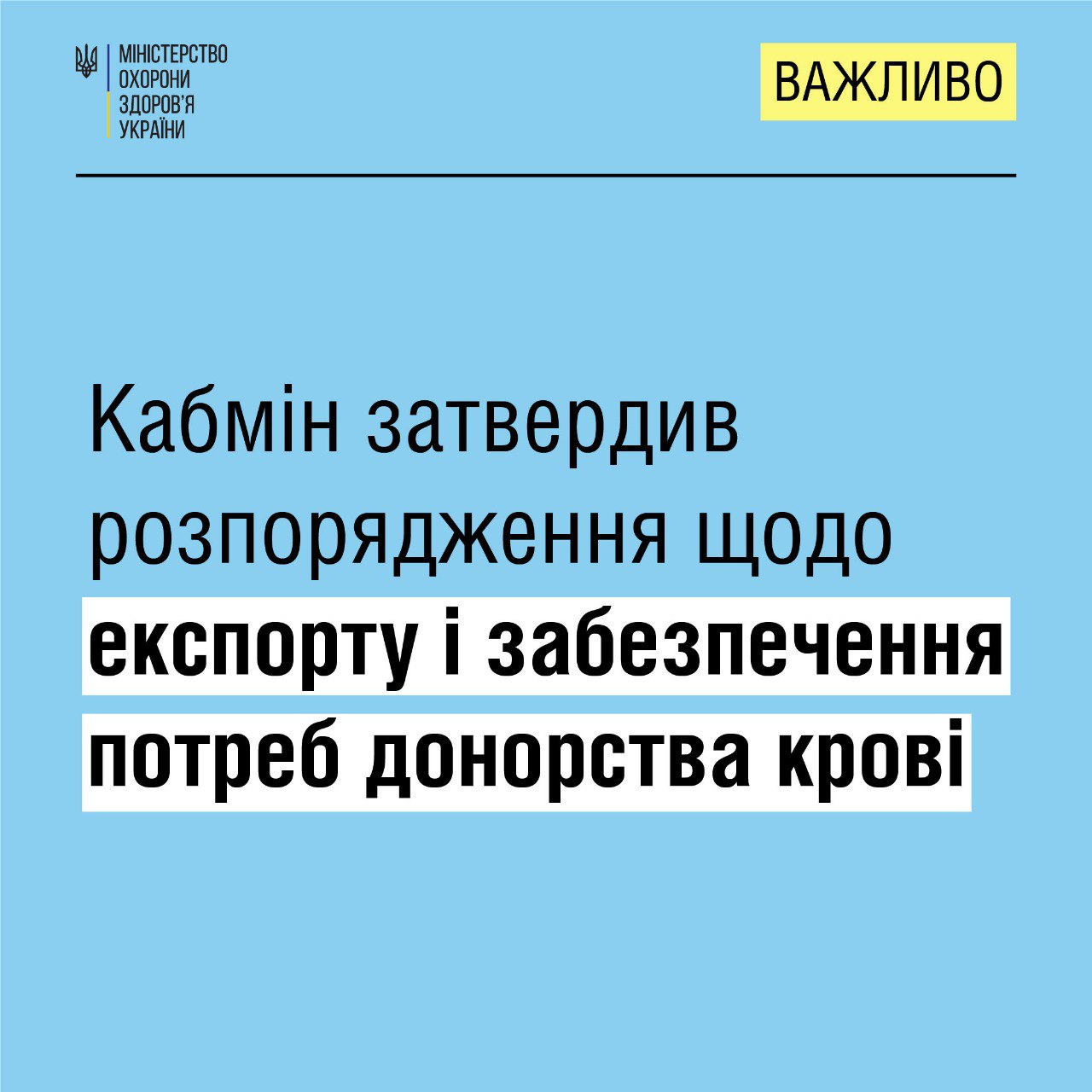 Кабінет Міністрів України з 25 лютого призупинив експорт препаратів крові на 30 днів.