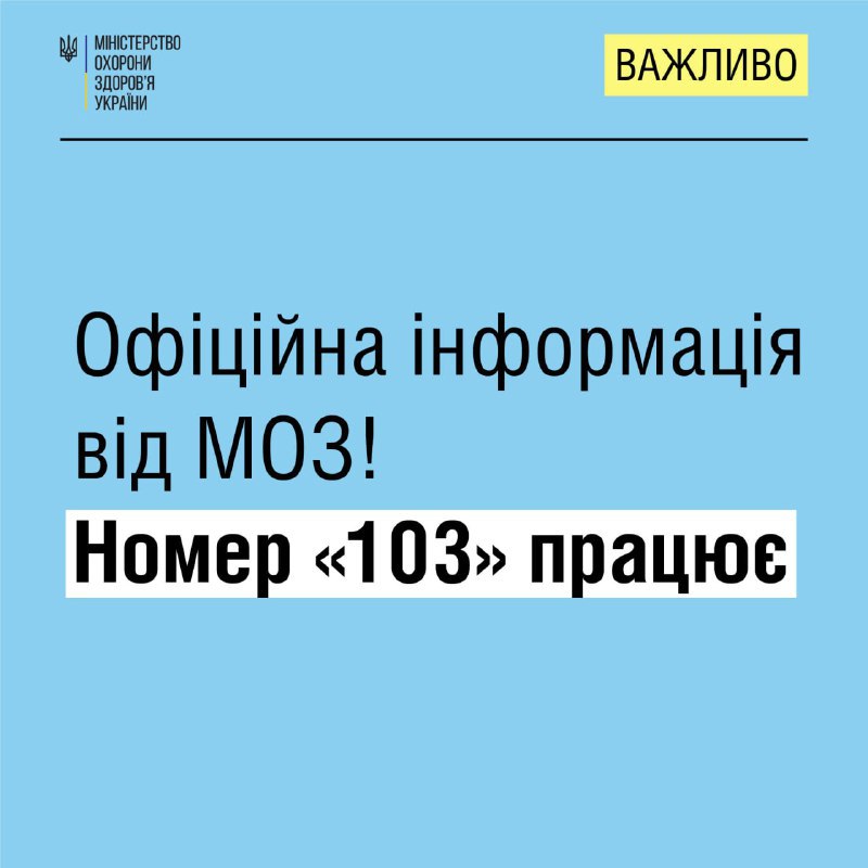 ▪️Номер «103» працює, а бригади екстреної медичної допомоги надають допомогу всім постраждалим.