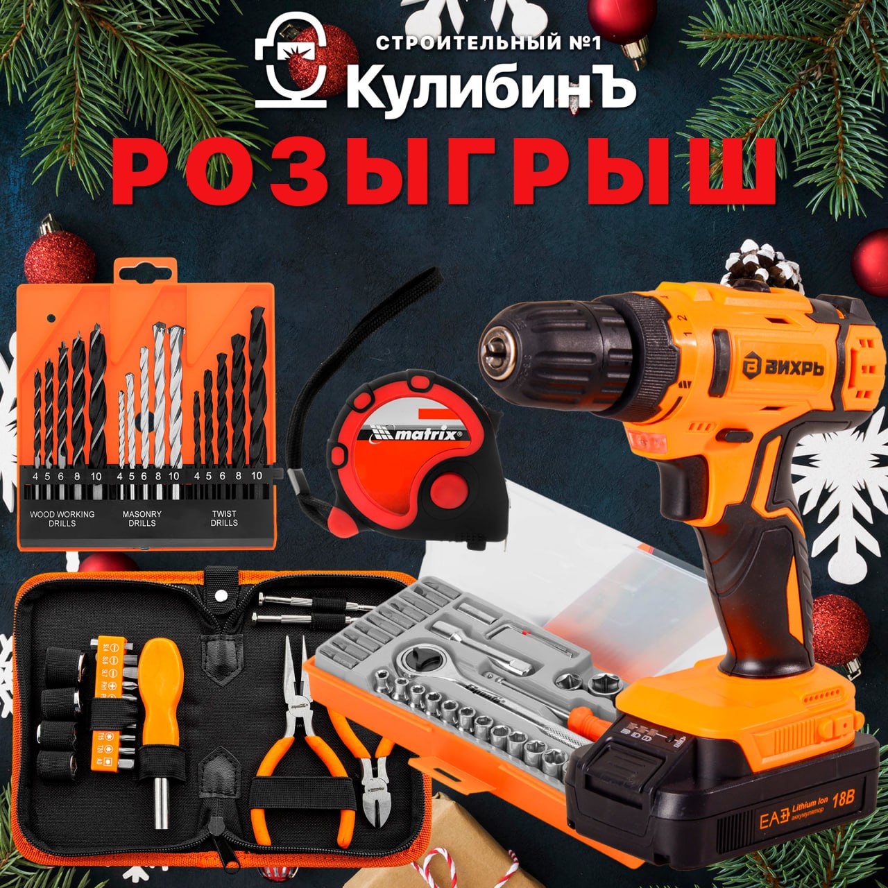 1 место: Дрель-шуруповерт аккумуляторная Вихрь