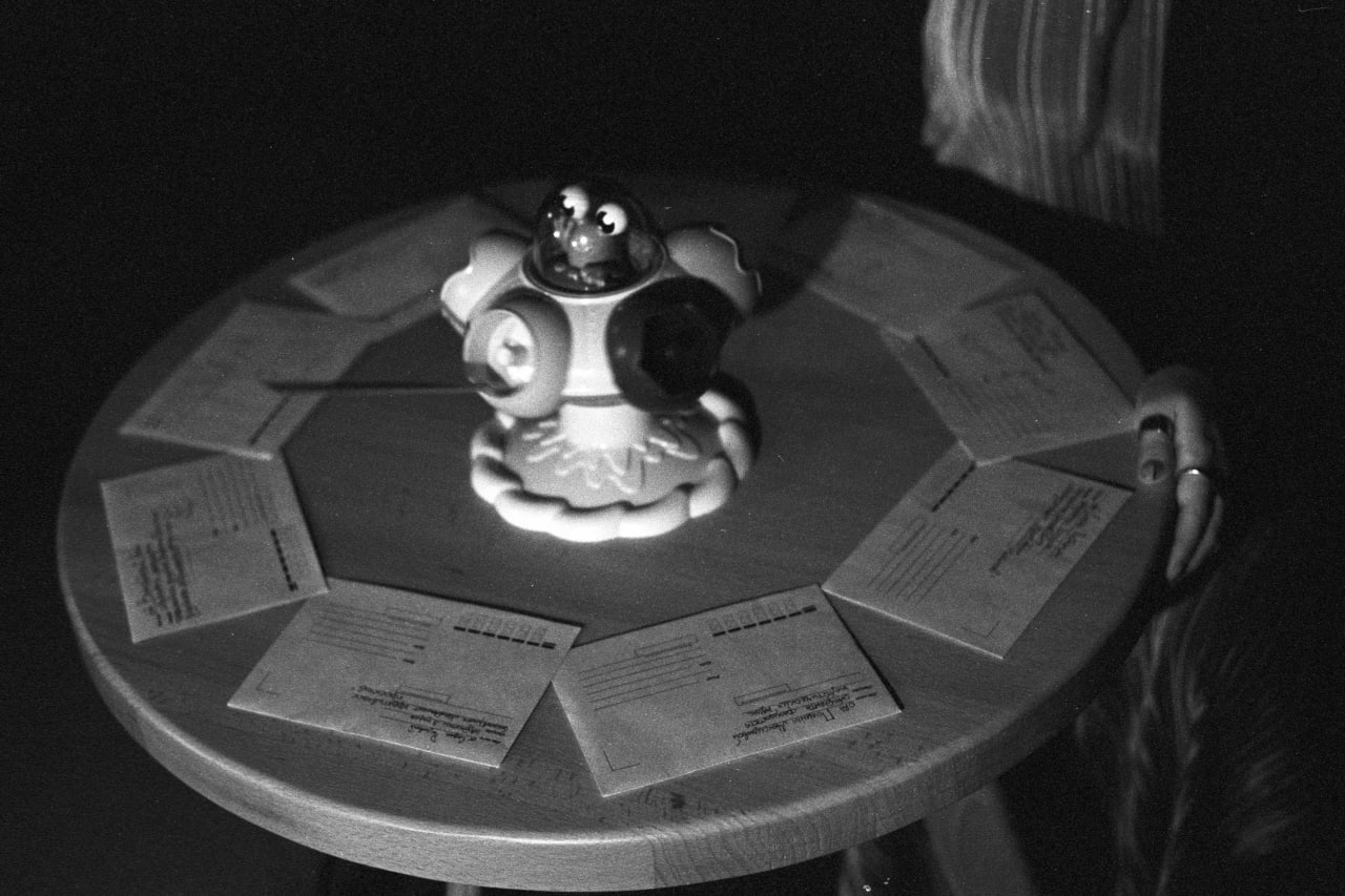 Вдруг видеограф Шанинки Егор Макаров вспомнил о существовании игрушек. Игрушек-сортеров. Так мы встретились с Томми — пятицветным волчком с лягушкой в межгалактическом шаттле. Не теряя ни минуты, мы связались с владельцем Томми и объяснили срочность и важность нашей задачи. После долгих уговоров он уступил организаторам игры и выслал Томми в Москву в ту же секунду, что положил трубку.