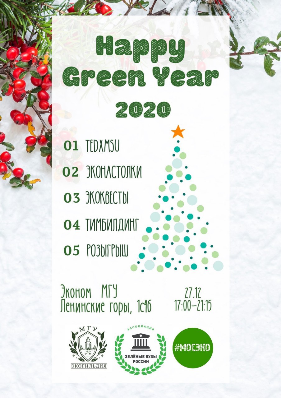 Экогильдия МГУ приглашает отпраздновать “Happy Green Year’20”, он пройдет в рамках новогоднего дня единых действий Ассоциации «зеленых» вузов России.