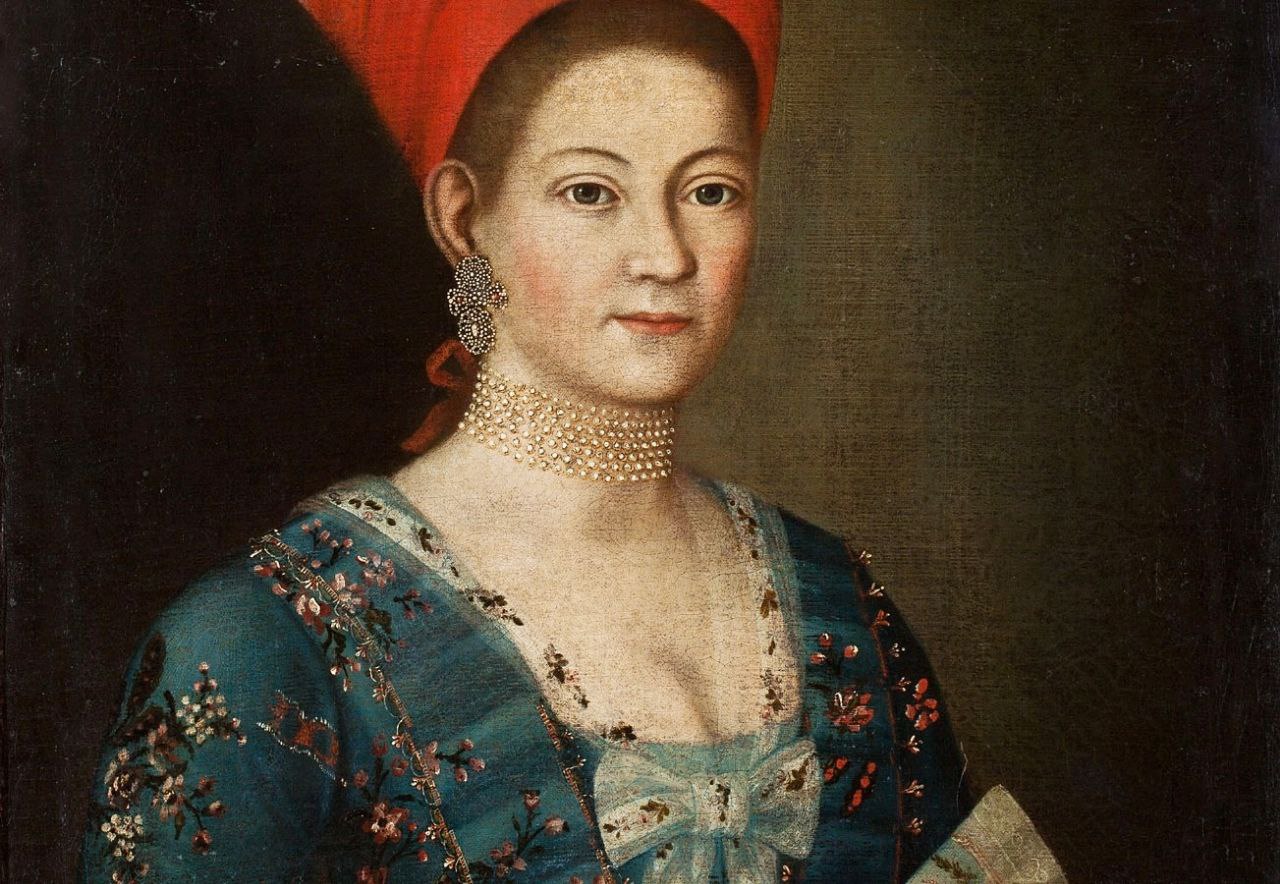 Неизвестный художник Портрет неизвестной с веером (1770-1780-е, собрание Исторического музея) фрагмент