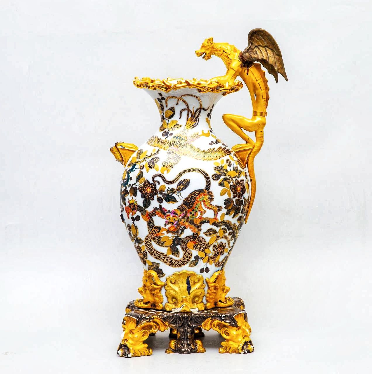 Аукционный дом «Русская эмаль» недавно продавал вазу с горгульей в стиле шинуазри производства завода братьев Корниловых и ушла она за 500 000₽.