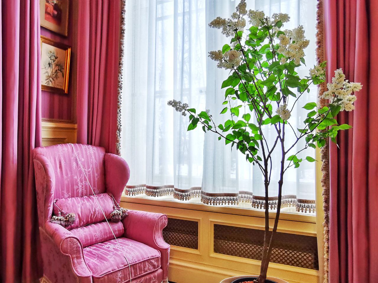 Сирень, любимый цветок Александры Федоровны, сегодня украшает Кленовую гостиную и Сиреневый кабинет (на фото).