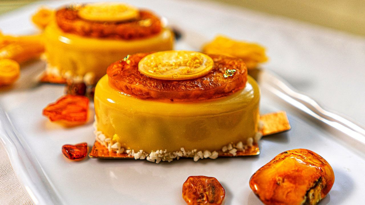 Мастера-кондитеры сети кофеен "Волконский", к 20-летию восстановления "восьмого чуда света", создали пирожное "Янтарная комната".