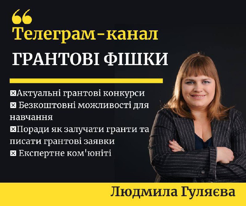 Запрошуємо на Телеграм-канал "Грантові фішки", де авторка каналу, експертка з грантів та фандрейзингу Людмила Гуляєва ділиться інформацією про гранти, стипендії, конкурси та інші корисні можливості з усього світу