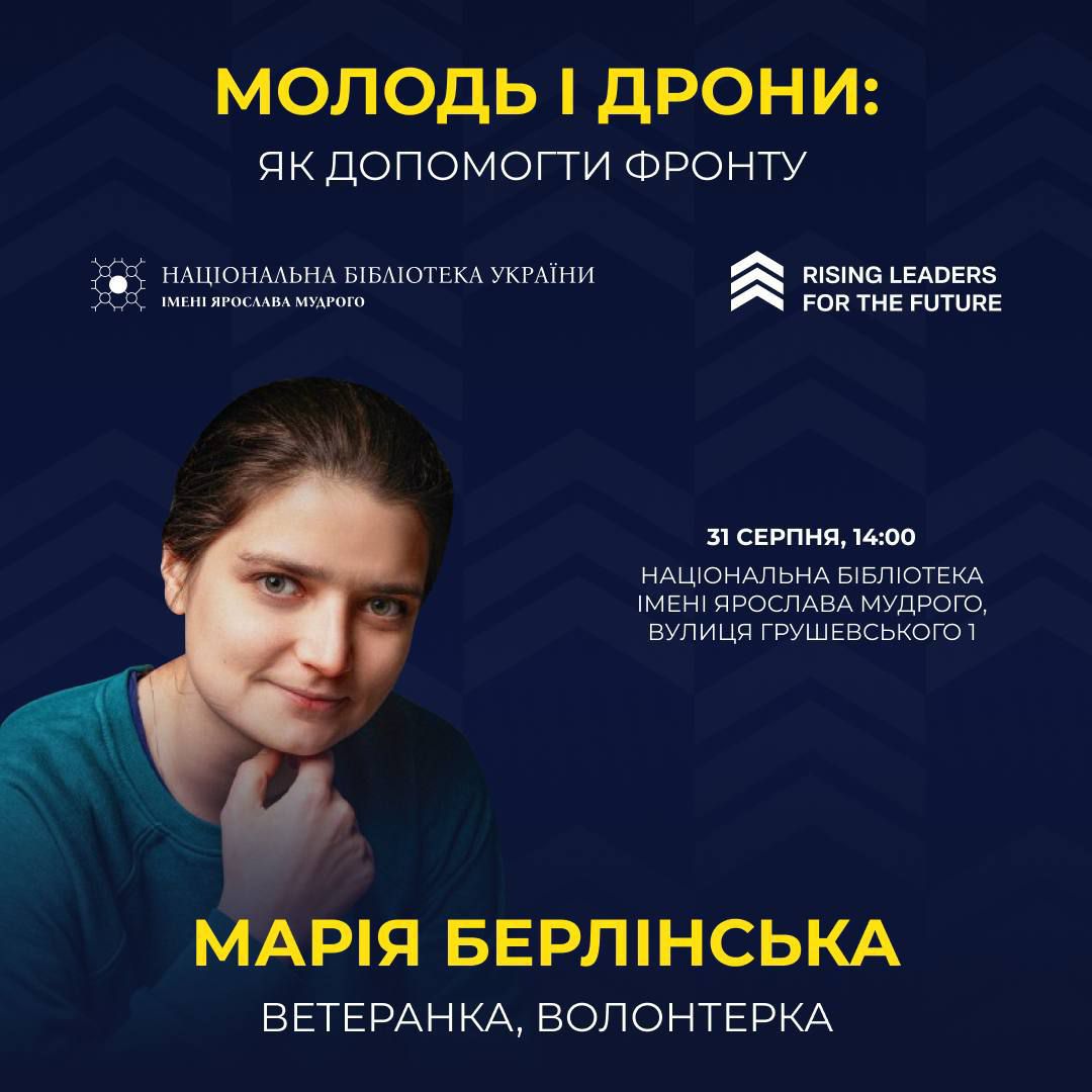 "Rising Leaders for the Future" спільно з Національною бібліотекою імені Ярослава Мудрого запрошують вас на лекцію "Молодь і дрони: як допомогти фронту"