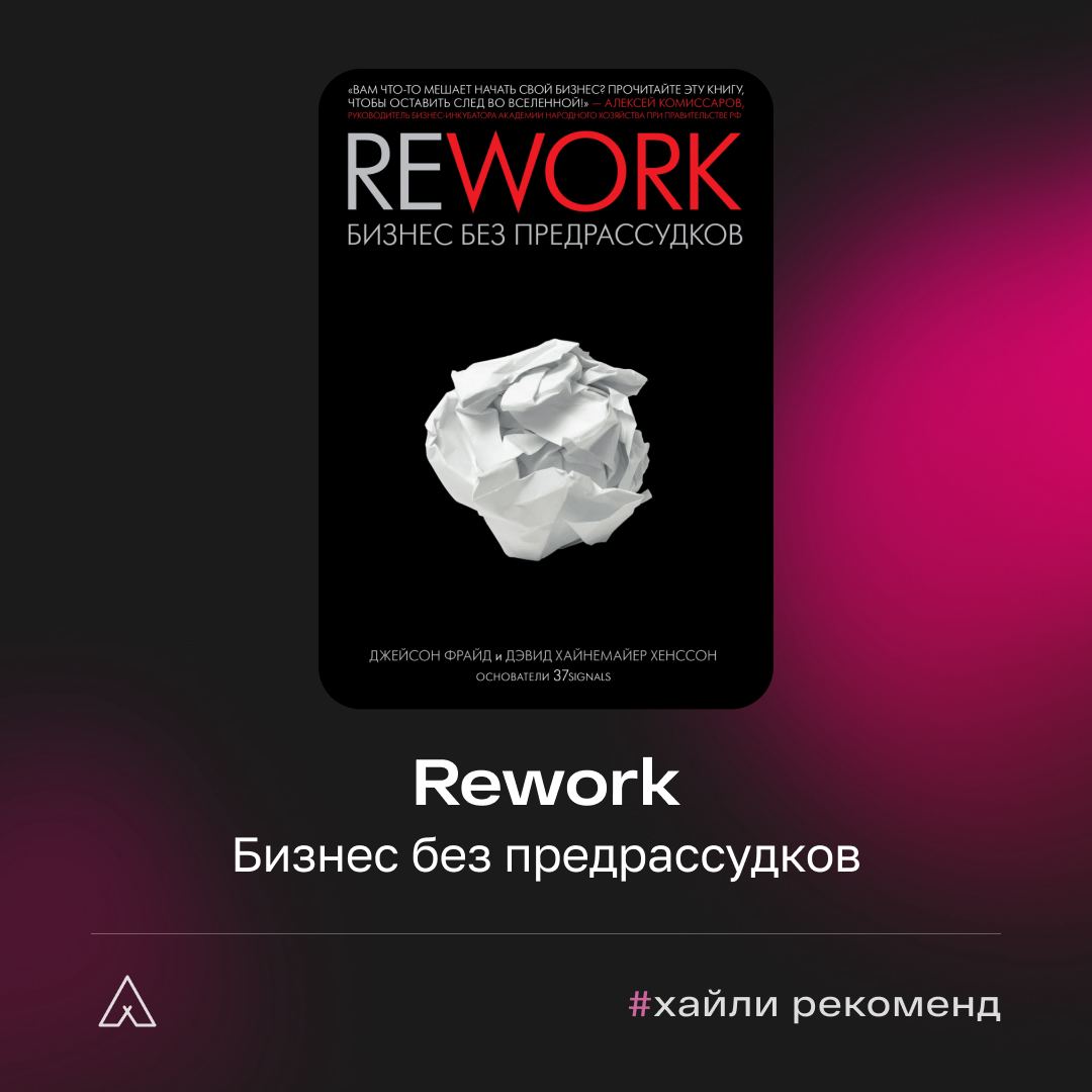 И поэтому сегодня я крайне рекомендую прочитать книгу «Rework. Бизнес без предрассудков». Книга уже довольно мейнстримная, но это не делает её плохой. Она небольшая (чуть больше 200 страниц), читается за 2 вечера. Но содержит в себе совершенно иной взгляд на построение продуктов и команд. Первый раз я прочиал ее в году 2017. Тогда она мне понравилась, но тогда не все идеи мне показались здравыми из-за отсутствия опыта, вероятнее всего. Потом я ее перечитал в 2020 году. И эта книга открылась для меня совершенно с иной стороны. Большинство принципов, описанных в книге, начали отзываться с моим пониманием построения продуктов.