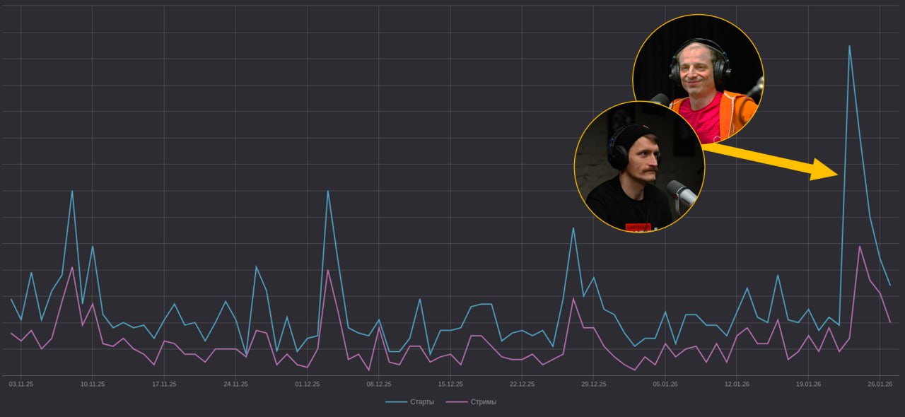 📉 Перевернём страницу и посмотрим на статистику прослушиваний подкаста @parkrun за последние 90 дней. Пики — это выходы эпизодов. Последний и самый большой всплеск — это эпизод с Володей и Ярославом из Оранжевой команды пейсмейкеров. Выпуск действительно получился интересным, а главное — очень полезным для бегового сообщества.
