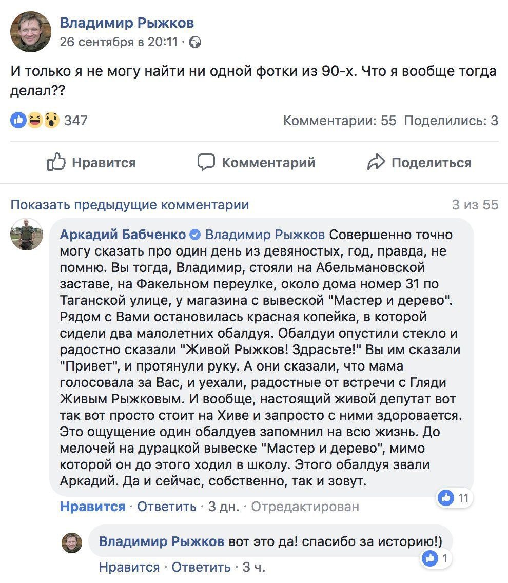 Прелесть этой "морозной истории" (по изящному выражению @insect_life) от Бабченко в том, что Владимир Рыжков в 1993 и 1999 гг. избирался по округу в Барнауле, а в 1995-м - по партийному списку НДР, где стоял под номером 12, так что его фамилия в бюллетень не вносилась. Ни у москвича Бабченко, ни у его матери чисто технически не было ну никакой возможности проголосовать за Рыжкова.
