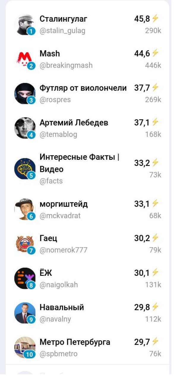 Навальный свой рейтинг телеграм-каналов публикует. Самого себя поставил на 9-е место.