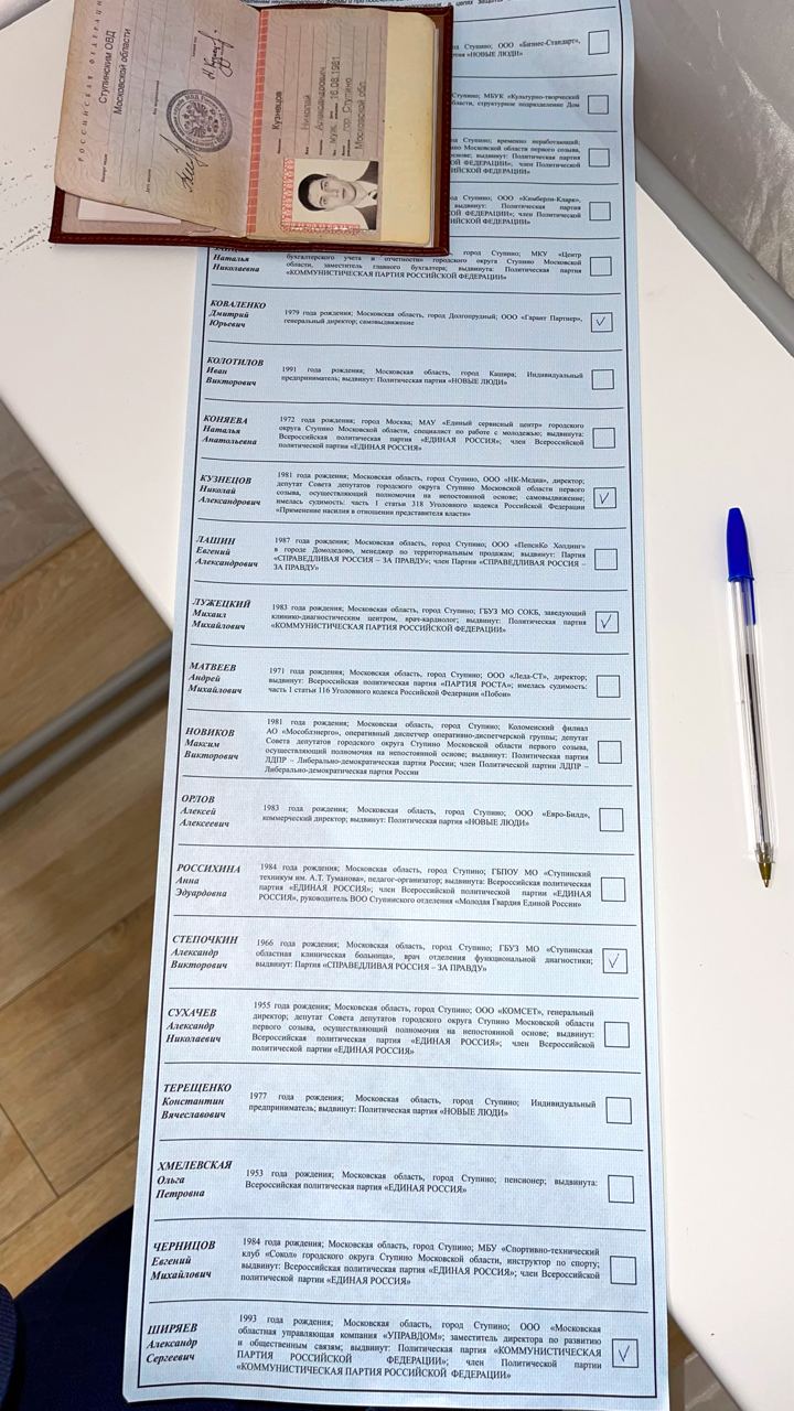 Поставил 5 галочек за «пятёрку» кандидатов на 3 избирательном округе: за себя, за Дмитрия Коваленко, за Михаила Лужецкого, за Александра Стёпочкина и за Александра Ширяева.