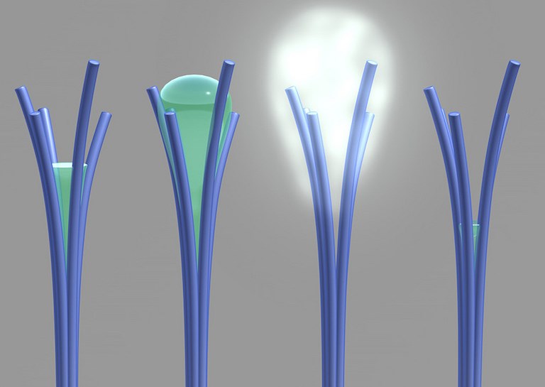 پژوهشگران مؤسسه فناوری کالیفرنیا روشی ساده و ارزان برای ساخت رباتهای بسیار ریز به شکل حباب ابداع کردهاند. این حبابها از پروتئین طبیعی ساخته میشوند و با کمک آنزیمهایی که روی سطحشان قرار دارد، از مواد موجود در بدن (مانند اوره) به عنوان سوخت استفاده میکنند و به جلو حرکت میکنند. دو نوع از این رباتها ساخته شده: یکی با کمک میدان مغناطیسی هدایت میشود و دیگری بهطور خودکار به سوی تومورها میرود، زیرا تومورها مادهای (پراکسید هیدروژن) تولید میکنند که این رباتها به آن جذب میشوند.