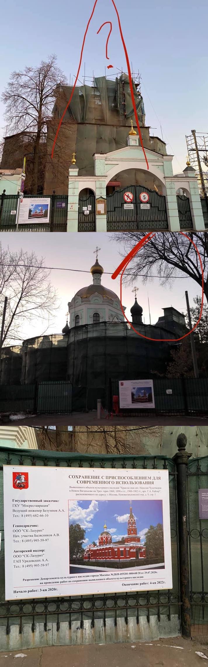 Московские реставраторы пробили очередное дно. Вернее - департамент культурного наследия столицы. До СМИ тема ещё не добралась, но Telegram-каналы и соцсети публикуют фотографии ужасающих последствий потуг рукожопов, нанятых ГКУ «Мосреставрация», чтобы вернуть былое великолепие Храму Николая Чудотворца. Тому самому, который в Новом Ваганьковском на Трёх Горах. Но единственное чудо, которое случилось, в том, что при обрушении колокольни вчера никто не пострадал.