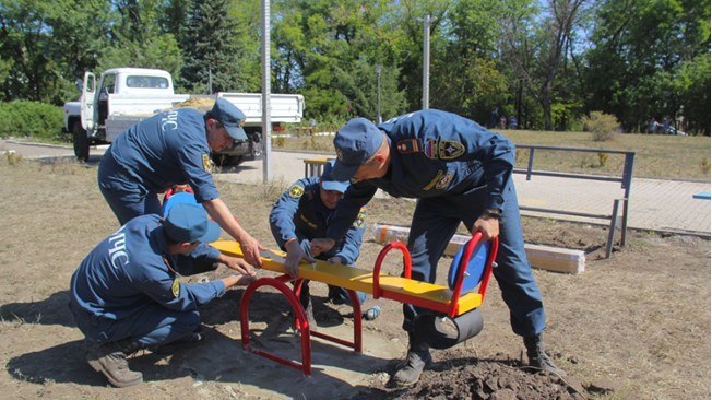 🔹Кроме того, силами МЧС ДНР в г. Докучаевск оборудована детская игровая площадка.