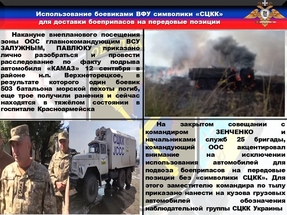 ♦️На закрытом совещании с командиром ЗЕНЧЕНКО и начальниками служб 25 бригады, командующий ООС акцентировал внимание на исключении использования автомобилей для подвоза боеприпасов на передовые позиции без «символики СЦКК». Для этого заместителю командира по тылу приказано нанести на кузова грузовых автомобилей обозначения наблюдательной группы СЦКК Украины.