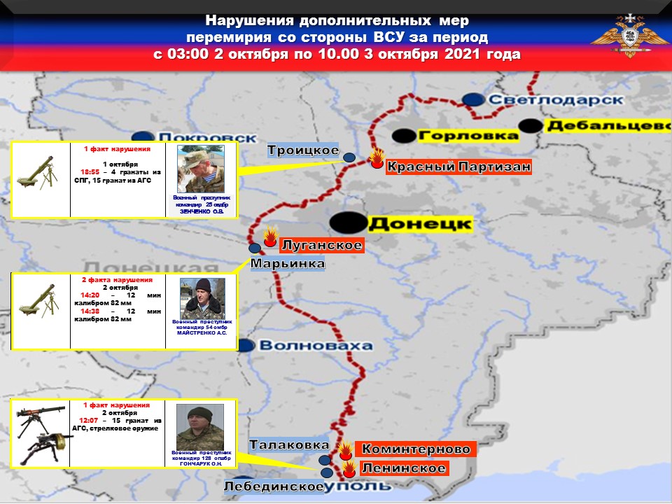 ❗️Факты нарушений в оперативном порядке доведены до представителей украинской стороны в СЦКК, с целью своевременного принятия мер к нарушителям перемирия и исключения фальсификации данных о нарушениях режима прекращения огня со стороны украинских боевиков.