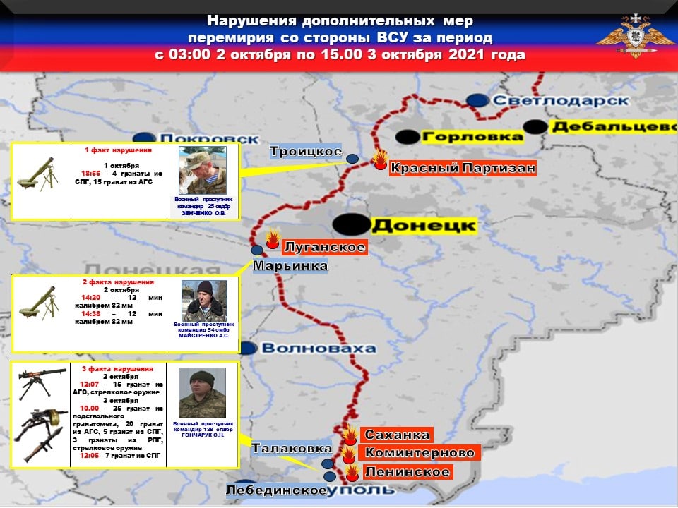 ❗️Факты нарушений в оперативном порядке доведены до представителей украинской стороны в СЦКК, с целью своевременного принятия мер к нарушителям перемирия и исключения фальсификации данных о нарушениях режима прекращения огня со стороны украинских боевиков.