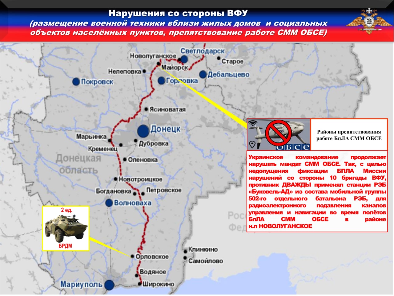 ♦️Украинская сторона продолжает блокировать работу БпЛА СММ ОБСЕ. С целью недопущения фиксации нарушений со стороны 10, 25 и 128 бригад, противник применил станции РЭБ «Буковель-АД» из состава мобильных групп 305 и 502 отдельных батальонов РЭБ, для радиоэлектронного подавления каналов управления и навигации во время полётов БпЛА СММ ОБСЕ в районах н.п. ВАРВАРОВКА, ПРИВОЛЬЕ, КОНСТАНТИНОВКА, ДЗЕРЖИНСК, РОГАНСКОЕ, НОВОАНДРЕЕВКА, КАЛИНОВО И ОРЛОВСКОЕ.