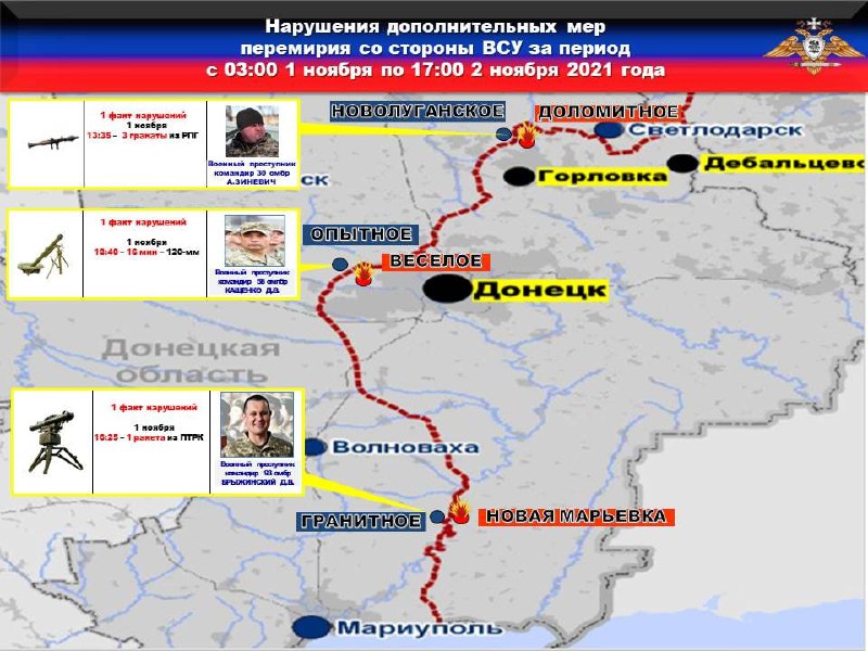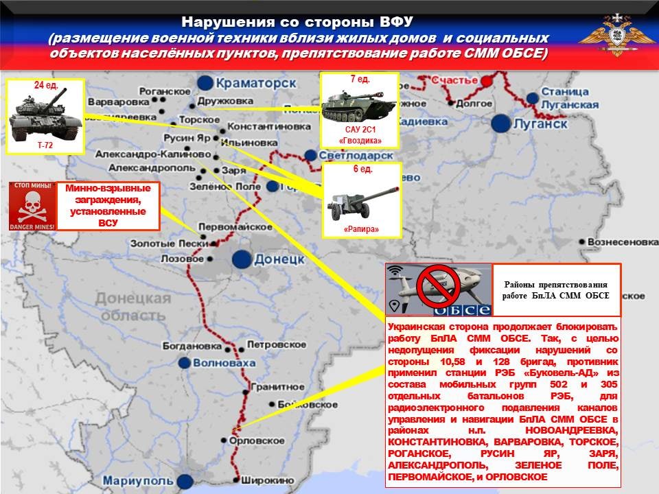❗️Факты нарушений в оперативном порядке доведены до представителей украинской стороны в СЦКК, с целью своевременного принятия мер к нарушителям перемирия и исключения случаев фальсификации учетных данных о нарушениях режима прекращения огня со стороны украинских боевиков.