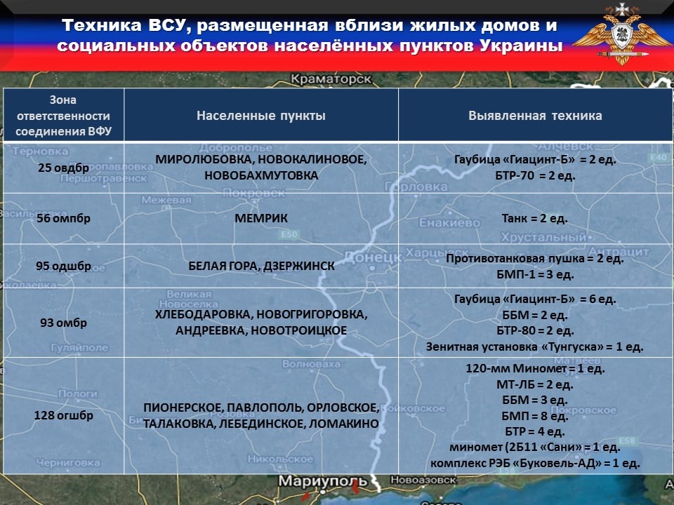 ⛔️В нарушение ТРЕТЬЕГО пункта дополнительных мер, украинские вооруженные формирования разместили ЧЕТЫРЕ единицы вооружения и военной техники вблизи жилых домов и муниципальных объектов на подконтрольной Украине территории: