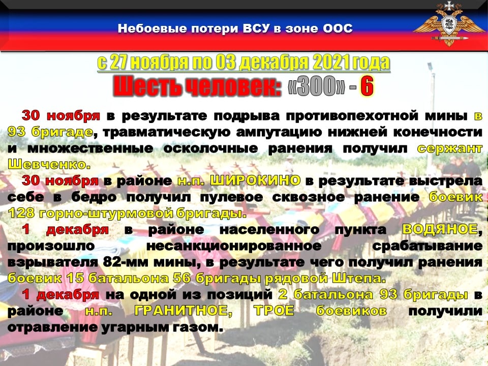 ☠️📈Сведения о небоевых потерях личного состава ОТГ «ВОСТОК» за период с 29 ноября по 5 декабря 2021 года