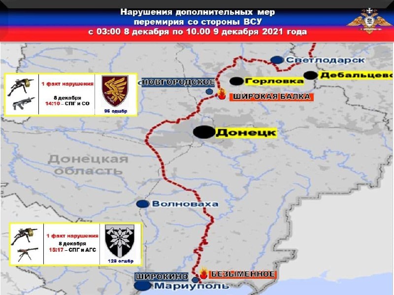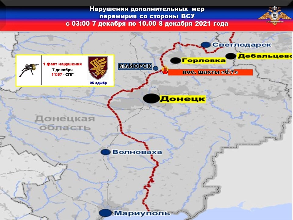 ❗️Согласно официальному отчету Миссии ОБСЕ от 7 декабря 2021 года отмечаются факты открытия огня с позиций 25 овдбр в районе ДФС и с позиций 93 бригады в пределах участка разведения сил и средств в районе н.п. ПЕТРОВСКОЕ.