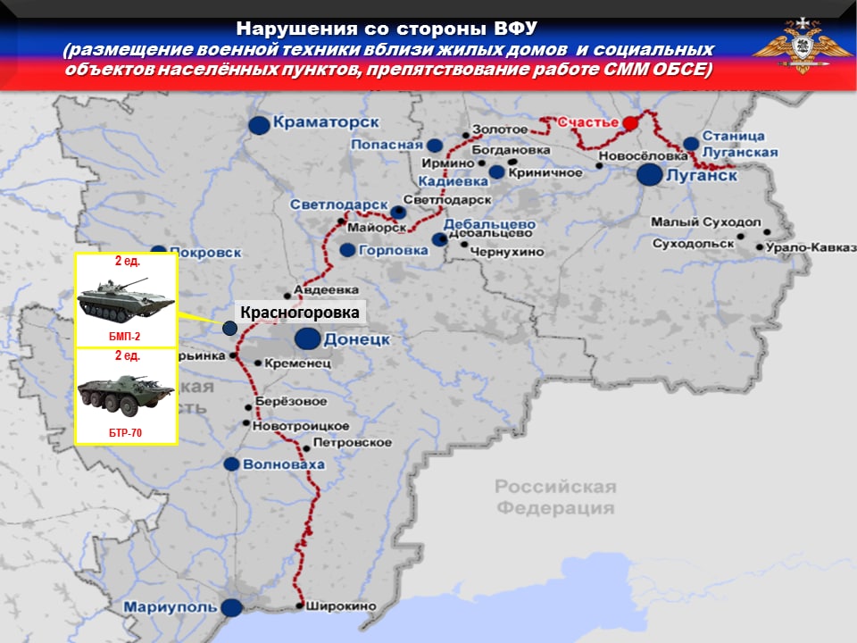 🚫В нарушение ТРЕТЬЕГО пункта дополнительных мер, украинские боевики разместили ПЯТЬ единиц вооружения и военной техники вблизи жилых домов и муниципальных объектов на подконтрольной Украине территории.