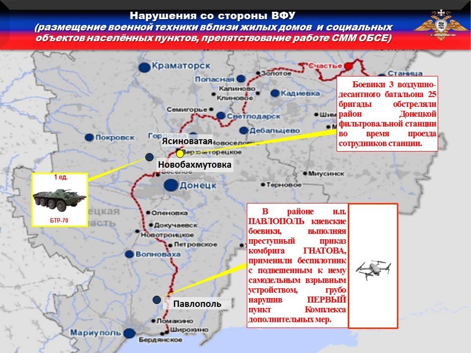 ⛔️С начала текущих суток со стороны украинских боевиков зафиксировано ТРИ нарушения Комплекса дополнительных мер по контролю за соблюдением режима прекращения огня.