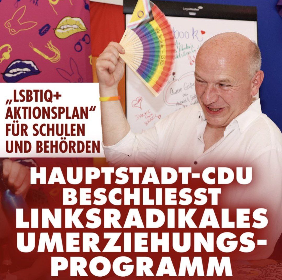 🇩🇪🏳️🌈 "LGBTIQ+*-Aktionsplan für Schulen und Behörden: Die CDU in der Hauptstadt hat ein Programm zur Umerziehung der radikalen Linken beschlossen