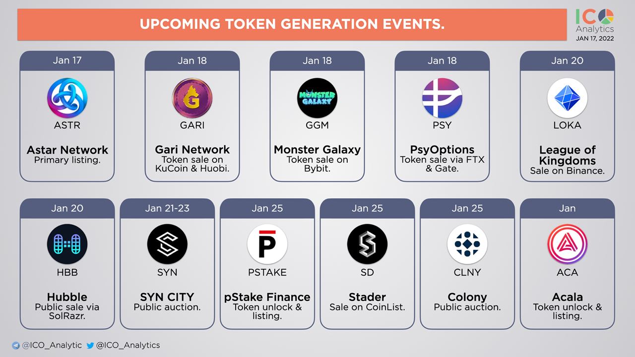 Some of the upcoming TGEs/sales/auctions/listings you should know about.