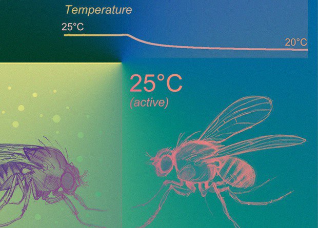 Вылезать из кровати утром сложнее, если в комнате холодно. Как такое нежелание проявляется на уровне отдельных нервных клеток у человека, мы не знаем, а с дрозофилами стало понятнее. Оказалось, у них есть специальные нейроны, которые при температурах ниже +25 по Цельсию тормозят клетки-регуляторы сна и бодрствования. В результате мухи дольше спят ночью, когда им холодно, и меньше двигаются в периоды пиковой активности — рано утром и рано вечером. Это помогает насекомым сэкономить энергию в ожидании лучших (более теплых) времен
