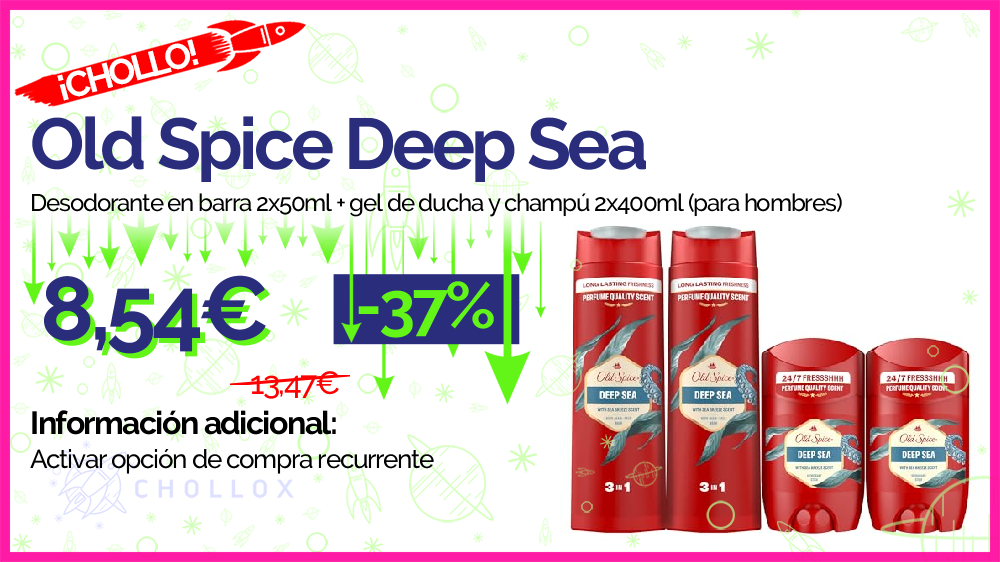 💥 🔉 Old Spice Deep Sea - Desodorante en barra 2x50ml + gel de ducha y champú 2x400ml (para hombres) #Amazon