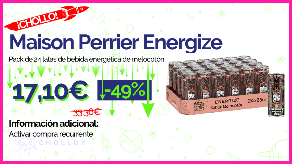 💥 🔉 Maison Perrier Energize - Pack de 24 latas de bebida energética de melocotón #Amazon