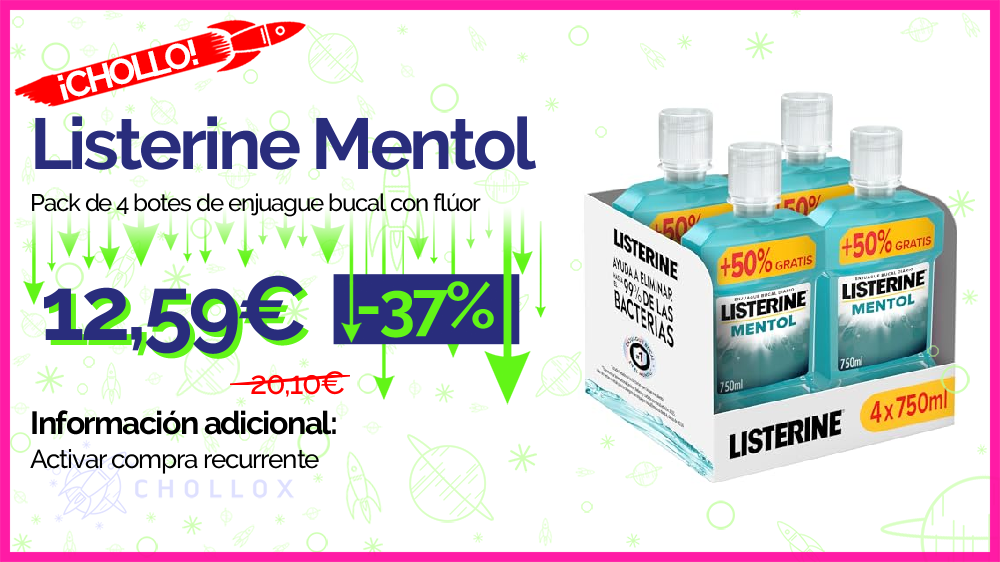💥 🔉 Listerine Mentol - Pack de 4 botes de enjuague bucal con flúor #Amazon